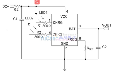 當(dāng)輸入電壓(交流適配器或USB電源)被拿掉時(shí),YB4055自動(dòng)進(jìn)入一個(gè)低電流狀態(tài),將電池漏電流降至1uA以下.YB4055的其他特點(diǎn)包括充電電流欠壓閉鎖自動(dòng)再充電和一個(gè)用于指示充電結(jié)束和輸入電壓接入的狀態(tài)引腳。